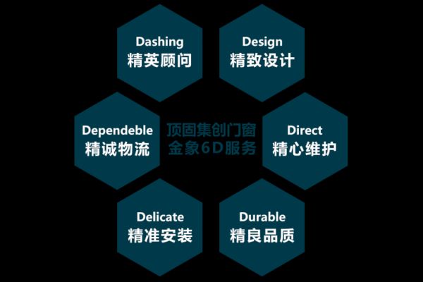 在服务方面,为了让客户省心、放心,顶固集创门窗特别量身打造了行业首创的金象6D服务体系,从销售、设计、安装、维护、品质、物流六个方面为客户提供24小时不间断的高品质无忧服务,真正用心服务好每一个客户。