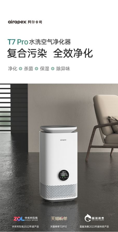 基于用户对传统空气净化器功效的质疑?阿尔卡司研发团队,在过去的6年多的时间里,创新了280多项专利技术,做了1000多次的优化测试,首次系统地完善了“水体门控”空气净化底层技术,并发明了“T型水洗空气净化器”。仿生大自然雷雨净泽环境的现象,能够为用户带来直观的空气净化体验。该技术采取“固态过滤、气态水洗”的干湿双滤芯结构原理,在传统的HEPA滤芯采取物理式吸附进行空气过滤净化后,气流结合模拟雷电效应产生高能离子场进行瞬间击穿病毒细菌的细胞膜、DNA和蛋白质,彻底消毒灭菌;并以水为介质进行更加彻底⽔洗净化空气,不仅能够高效净化空气中的PM2.5、PM1.0等颗粒污染物,还可快速去除和分解甲醛、甲苯、TVOC、氨气、油烟、宠物异味、二手烟等有毒有害气体。藉此,阿尔卡司打开了通向高端空气净化品牌之路。