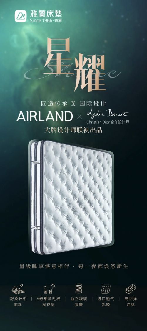 以床垫为载体,Lydie Bossuet联合家居品牌雅兰推出联名款【星耀床垫】产品,在卧室空间寻找到跨国设计的全新呈现方式,演绎一段浪漫与格调并存的佳话。
