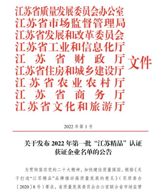 江苏精品”是江苏省委、省政府大力实施品牌发展战略、建设质量强省的一项重要举措。获得“江苏精品”认定的产品为具有国际先进(国内领先)水平,创新能力强、品质卓越、 品牌效应好、经济和社会效益显著的自主品牌产品。由江苏省委、省政府牵头组织依据国际通行认证标准和流程严格评选,是高品质、高水平的代名词,含金量极高。A. O.史密斯「瀞」油烟机荣获“江苏精品”认证既是对产品质量的肯定,也是对A.O.史密斯创新与研发实力的认可。