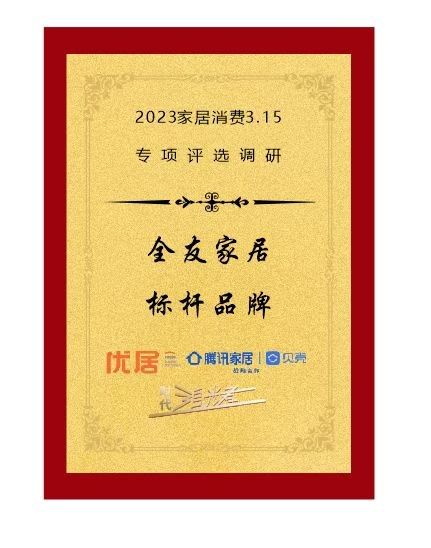 据悉,此次“时代追光者·315专项评选调研”以“产品”、“品牌”、“服务”三方面展开,通过线上问卷、 实地街坊,并结合产品品质、环保、设计、工艺、技术、销量、服务、交付、口碑等维度进行综合考评,以细分项考核最终得分作为评选标准,秉持公平、公正、公开的原则对于参选品牌、产品进行综合维度考评,择优入选。据统计,共计417个品牌/产品报名参与此次评选活动,根据活动规则综合考评考评后,“产品”、“品牌”、“服务”三类奖项各选取前十名授予荣誉奖杯。其中,全友家居以高分获得“时代追光者·315标杆品牌奖”。