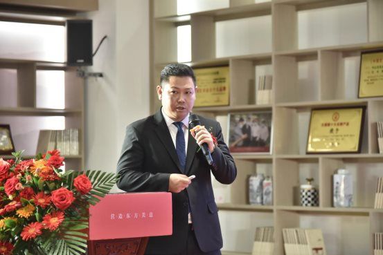 首先,东成红木董事长张锡复登台致辞。张董事长首先代表公司对各位远道而来的领导、嘉宾和经销商朋友表达了欢迎和感谢,并向各位嘉宾分享了创业三十三年来的心路历程和创业经验。同时表达了对中式大家居行业广阔前景的展望和期许。受到了全场的一致赞许和认同。