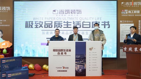 同时,白皮书颁布了吉筑装饰的基础服务系统,即12小时响应,24小时接听,48小时到达现场,400服务热线等;快速响应系统,即4小时响应,8小时给出解决方案,24小时预约上门的快速机制;终身维护系统,即基础施工2年质保,水电工程5年质保,家装产品1年质保,重点项目10年质保等。