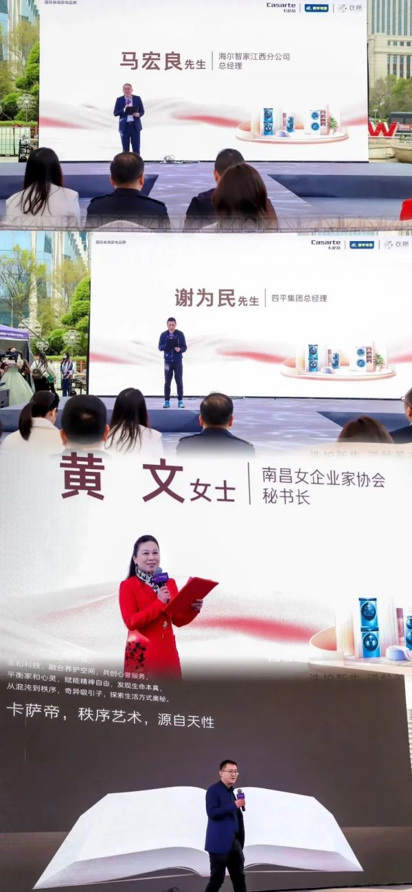 紧接着海尔智家江西分公司总经理马宏良先生开启了整场活动的致辞,马总在致辞中详细解读了卡萨帝为爱而生的初衷,他说从智能到智慧,从科技到生态,从生态到解决用户家装痛点,实现了整机纯平立面设计,直角线条,完美融入不同高端居住空间,浑然一体井然有序,实现家电产品的艺术化。