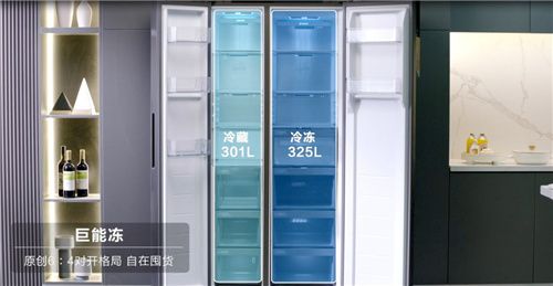 作为行业领头羊,海尔冰箱担负起责任,2021年首发“巨能冻”系列产品,重塑对开门冰箱空间布局,引领行业升级用户储鲜体验。3月13日,该系列又迎来三款新品上市,据悉,带来了两大根本性革新。第一,应用其原创的6:4冻藏新格局,带来大冷冻,小冷藏的全新配比,325L的超大冷冻空间比同容积冰箱多出约一台120L的小冰柜,600斤冻肉也存得下。