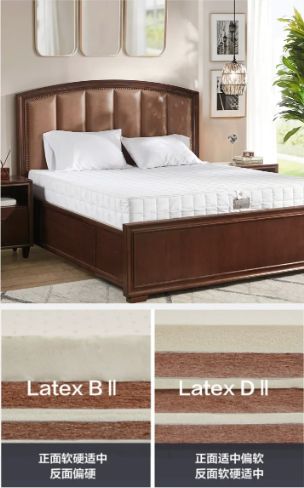 Latex系列床垫以乳胶为主要原料结合椰棕材质后,带来饱满的支撑力根据床垫两面的乳胶层厚度不同,有两种款式可选,乳胶层越厚睡感越软,可根据体感和季节翻面调整,更人性化地进行了考量。
