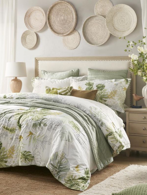 Rainforest全棉贡缎印花四件套,以描绘雨林的笔触,打开城市自然的入口明亮的植物氛围,手工绘制的植物图案,带来清新和绿色的气息,灵动的鸟类羽毛融合在这春日的风景里。