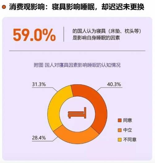 当代社会节奏加快,生活压力急速增加,对年轻人的影响尤为严重,最直接的表现就是出现睡眠问题。喜临门发表的《中国睡眠研究报告2023》中显示,2022年受访者平均睡眠时长为7.37小时。睡眠时长缩减的同时,人们的入睡时间也在推迟。2022年国人睡得更晚、入睡时间集中在23点至1点,比2021年国人的集中入睡时间向后推迟了1个小时。而且极端晚睡的人数还在不断增加,睡眠问题已经成为威胁当代人健康的一种“流行病”。睡眠问题不只是影响第二天的精神状态,还会直接导致身体疾病和心理疾病,改善睡眠问题刻不容缓。提高睡眠质量的关键是提高深睡时长,在影响睡眠质量的诸多外部因素中,59%的受访者认为床垫、枕头、被褥等寝具因素会影响睡眠状态,因此除了放松的心态,规律的作息,选择一款适合自己的舒适床垫同样是保障睡眠质量的重中之重。