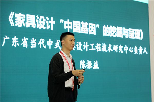 广东省当代中式家具设计工程技术研究中心负责人陈振益在题为《家具设计“中国基因”的挖掘与呈现》的演讲中解析了家具设计的“中国基因”。他认为,基因可以分成“人类学”及“社会学”两大领域,我们应该在设计当中找到符合内心秩序的基因与归属。他还从跨学界概念,带来了不同领域的设计作品和主义理念(集体主义、个人主义、价值主义),展示了家具设计里的“中国基因”是如何被挖掘、构建,并最终体现在作品当中。