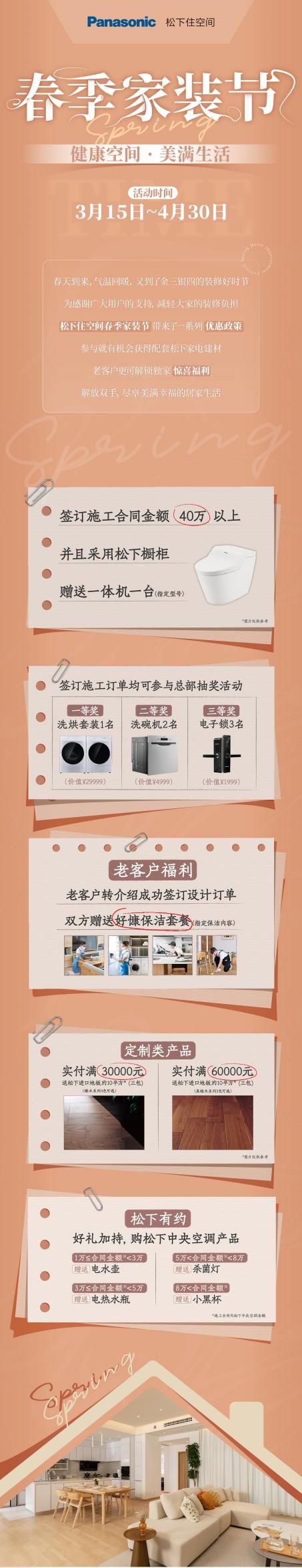 3月15日至4月30日家装节活动期间,用户除了有机会参与北京设计分享会,成功签订施工订单还可参加总部抽奖,赢千元大礼;实付满一定额度,即享配套松下好物,助力提高全屋装修的精致度。这些令人称道的优惠福利,给予了消费者一次舒心自在的消费体验,无形中扩大了品牌影响力,有利于树立积极正面的品牌形象。