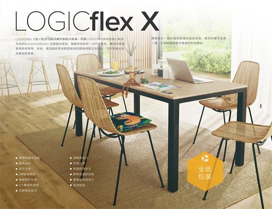 LOGICflex X 是一款多功能可调节智能升降桌,搭载LOGICflex系列的核心科技包含先进的DynamicMotion 无刷驱动系统,智能系统防护(ISP)技术,集成式电源管理系统等。安全、高性能的系统配搭独特的圆角框架立柱设计,带来出色且稳定的体验。