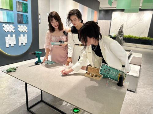 对此,兴辉瓷砖在3月品质月里更是以直播的形式对产品展开了测评,从防污效果到耐磨能力,从产品的平整度到防滑体验,面对各种考验,兴辉瓷砖来者不拒,并且顺利通关。“兴辉瓷砖原石系列采用了西班牙4K质感釉料,经过高温煅烧后在砖面形成了极细密的保护层,从源头上阻断了气孔渗污问题,所以防污又耐磨”,兴辉瓷砖产品管理部产品经理胡雪蕊介绍道。