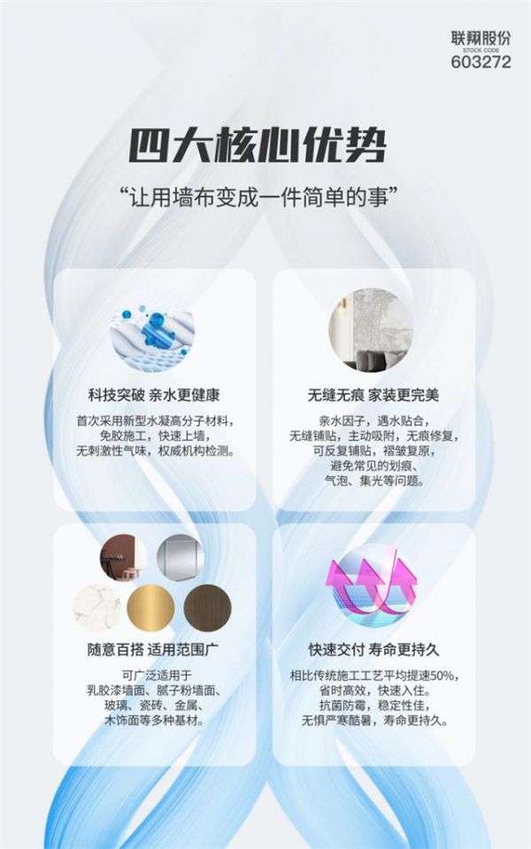 首次采用水凝高分子材料;高端面料+亲水因子=第五代墙布