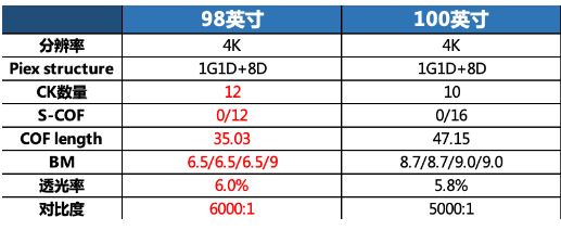 也许有人会觉得有疑惑,100吋电视怎么会是“非主流+伪创新”呢?这里将98吋屏幕与100吋屏幕参数展现给大家,也为大家普及一下屏幕设计和制造方面的基本知识。
