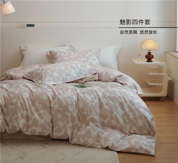 一个温暖治愈的家,不一定是奢华繁复的家居装饰,也不一定是景色宜人的山顶别墅,简简单单的素色美学,也能带来治愈的温馨感受。艾莱依家纺夏纳花园四件套,所选用的素色设计,即是近几年被大众所认可追捧的经典风格,简约不失时尚,简洁而不乏味,在素色空间中,更能让人心绪平和。不仅颜色治愈,夏纳花园选用的天丝棉面料,也特别亲肤细腻,通过“双螺旋”互补纺纱技术,将棉和天丝进行混纺,让面料兼具棉的透气亲肤和天丝的光泽顺滑。同时,运用的白色双拼接与双拼角设计工艺,使床品望去更富有层次感与时尚感,释放一种轻松自然的线条美,宛如艺术品的视觉享受,休憩其中,更让人沉醉放松。