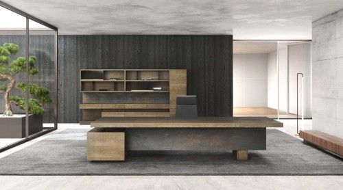 创新性地选用超薄天然石材材质,板岩的天然纹理与质地,如坚毅不屈的品格,如饱经岁月的积淀,厚积而薄发;隐藏式电源和手势感应灯,提供智能化体验;主桌设置电子指纹锁,满足私密要求,精致的收纳分隔细节,让领导者静思惟,决策于气定神闲之间.。