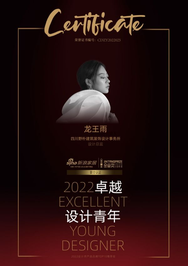 2022卓越设计青年”由新浪家居和金堂奖全国联盟发起,是设计业界最具传播价值的年度先锋荣誉,新浪家居与金堂奖联名认证。旨在发掘和表彰室内设计领域表现卓越的杰出青年设计师。设计师龙王雨荣膺“2022卓越设计青年”称号。