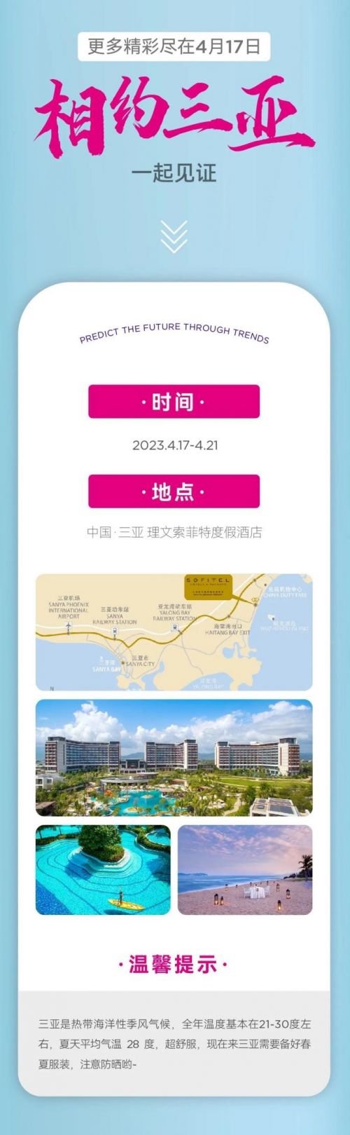 4月17-21日,米兰软装将于五星级三亚理文索菲特酒店举办“观势界·见未来”2023优秀经销商峰会,与经销商家人携手共聚,谋划未来。本次峰会,将给行业及经销商家人带来哪些惊喜?接下来,精彩看点抢先剧透!