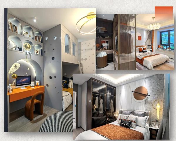 男孩房以灰白为主色调,活力橙色是孩子偶然出现的奇妙想法,带你一起畅游宇宙空间,探寻奇异的星辰大海。