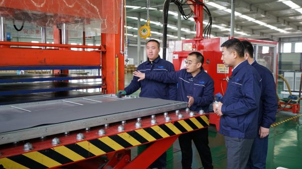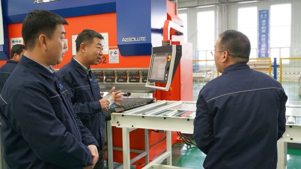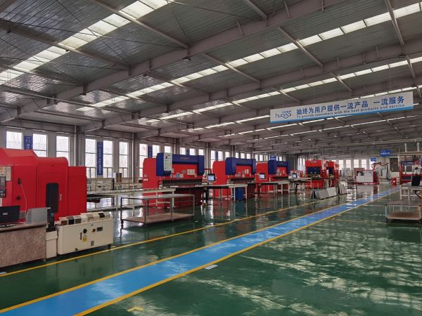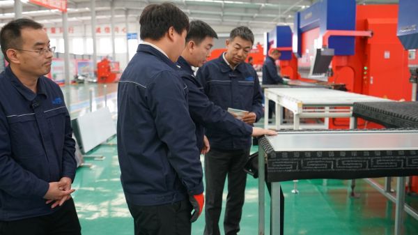 华耐智装订单部经理刘庆波介绍,生产流程就是剪板机开好料后,上料机器人把料吸到架子上,然后上到数控转塔冲床上去,自动上料的设备,数控转塔冲压吨位是20吨的,它可以把开好料的外形还有缺角和孔全部都在冲床上进行加工出来,加工精度可以控制在正负0.1mm。通常装饰墙板与装饰墙板之间的缝隙是2mm,公差超过0.5mm肉眼是可以看出来的,所以基础工艺的正负误差是0.1mm,这也直接决定了后续的工艺生产。