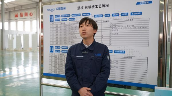 华耐智装工艺工程师邢晋对项目订单整体的流程进行了完整的介绍。在接到一个项目订单之后会针对这个项目进行初步的设计,主要包含初步的方案、平面图和配置表,之后设计人员会现场进行激光点云的现场复尺。复尺后进行深化设计,主要内容包括平顶立面图、深化的配置表。会有售前、售后交接的一系列文件,下达到工厂的订单部,由工厂的订单部进行相关订单的生产计划排产,包括工艺工程图、工艺图纸以及采购计划等一系列的工作。生产完成之后的质量检验也很重要,由质检人员进行相关的品质管控,打包完成之后进行发货交付到现场,最后由现场人员进行现场的安装。