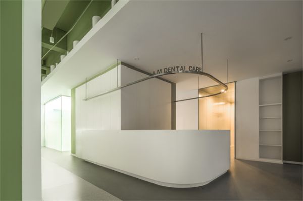 【王怀庄】:艾萌口腔。在功能分区上我们大胆提出了融入咖啡与饮品功能区域,提升整个候诊大厅空间上的使用节奏及候诊氛围上的改变,同时在运营最为繁忙的空间上,整体扩大现有行业面积要求,压缩一定比例的前场区域为主要核心设计思路,为后期投入运作运营控制降低投资风险,也是设计团队为投资方考虑实施的重点。