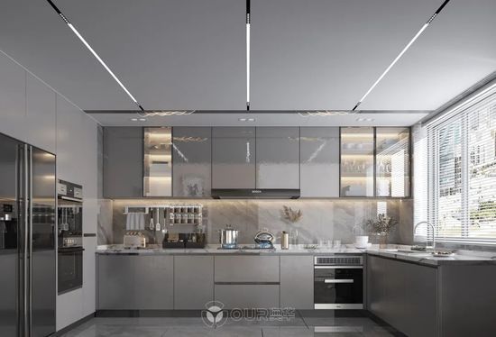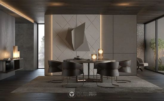 奥华从消费者的居家角度做出设计,将线型灯、线型音响等辅助性电器整合为线型设备带,集居家功用、现代美学功能为一体。