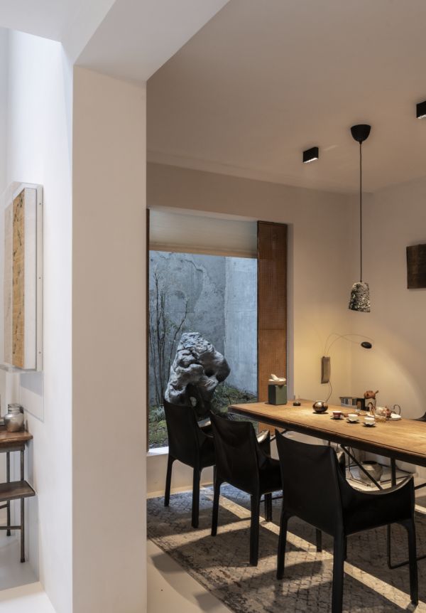 不同于商业展陈空间或者博物馆等艺术空间,住宅内的私人收藏展示需要更加自然和不经意一些,空间组织上也需要跟生活情境相结合。