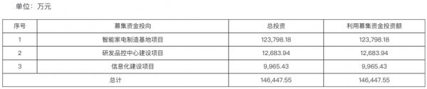 此次德尔玛IPO公开发行股票数量不超过9,231.25万股,占发行后已发行股份总数比例不低于10%,募集资金约14.64亿元,主要用于智能家电制造基地项目、研发品控中心建设项目和信息化建设项目。