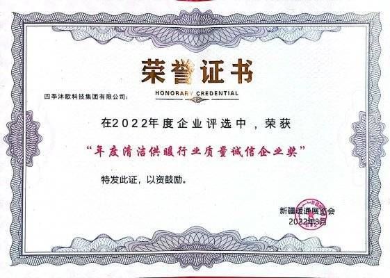 荣誉的获得是对四季沐歌硬核的产品研发、生产制造、销售服务以及扎根新疆、服务新疆所作出努力的充分肯定。