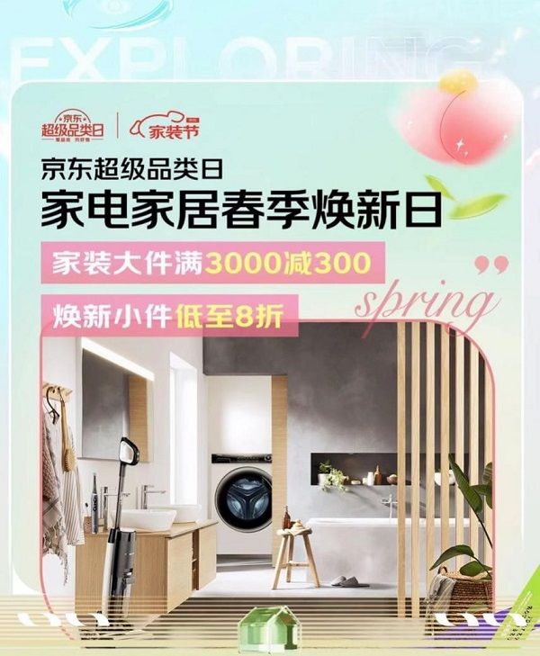 京东家电家居焕新日即将开启 家装大件满3000减300小件低至8折