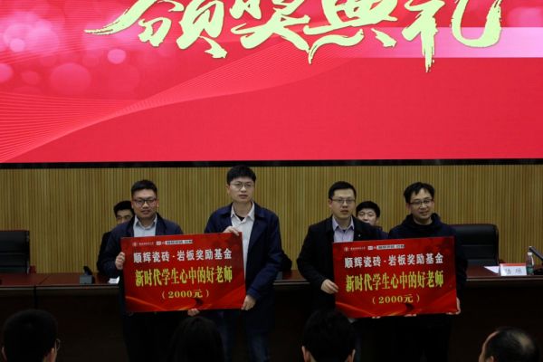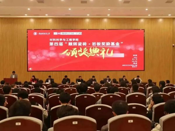 江西景德镇陶瓷大学是全国乃至世界陶瓷人才培养、陶瓷科技创新和陶瓷文化艺术交流的重要基地。2020年,在顺成陶瓷集团的布署下,“顺辉瓷砖·岩板奖励基金”在该校材料与工程学院,旨在促进景德镇陶瓷大学材料与工程学院教师潜心科研教学,为陶瓷行业培养优秀的创新人才;鼓励学生勤勉上进,成为进德智体美劳全面发展的优秀人才。