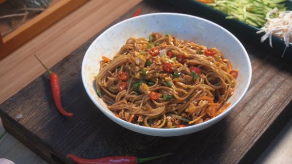 简单易学、营养又美味的鸡丝麻酱拌面制作完成了,面条爽滑筋道,配上浓浓的麻酱,好吃到停不下来~