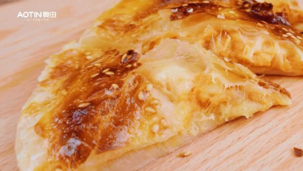 3.饼皮边边沾好,撒上白芝麻,刷蛋液
