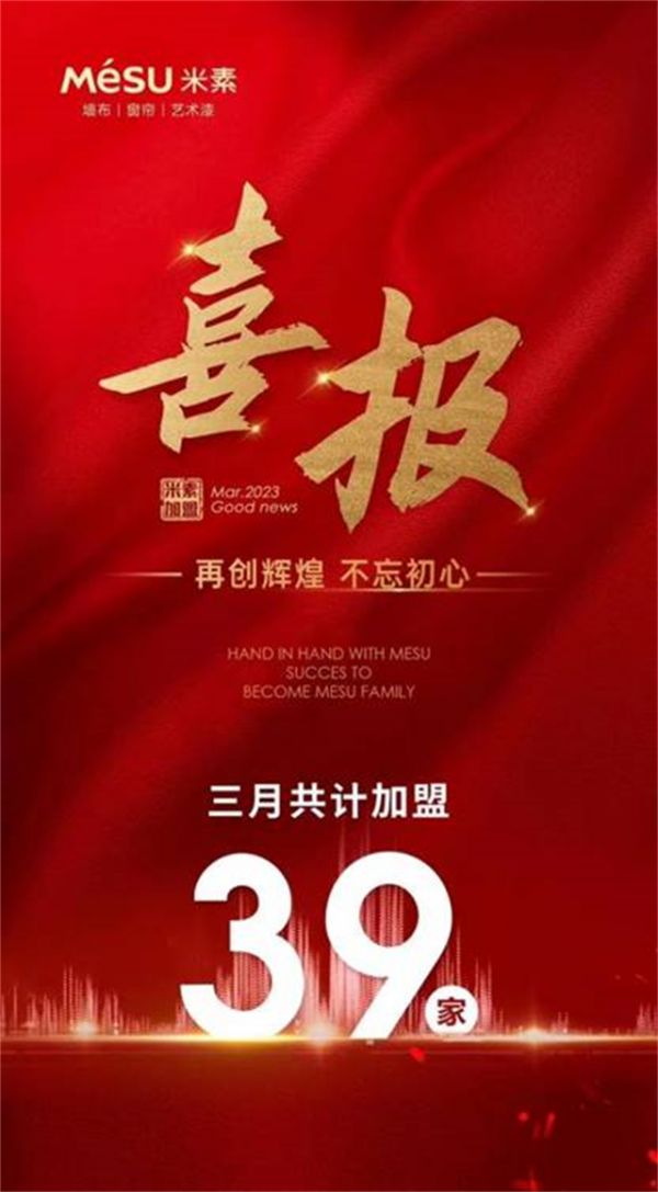 穿过寒冷的冬日,2023年注定是实力品牌招商加盟狂飙的一年。随着国内经济循环加快恢复,各方面的生产和市场需求稳步回升,行业一线品牌米素近期的招商成果,也再次印证了家居软装业迎来了蓄力爆发期——米素3月共计加盟39家!恭喜各位加盟商加入米素大家庭,米素将用行动证明实力,用实力证明家人们的选择,用努力谱写辉煌未来。