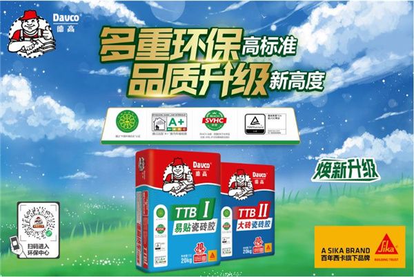 德高TTBI瓷砖胶及TTBII瓷砖胶已正式焕新升级。四大高环保标准加持,给各位全方位的安全守护: