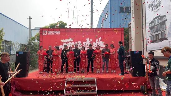 国达陶瓷鑫盛营销中心总经理王芳先生与蕲春国达陶瓷总经理程满刚先生等领导为开业剪彩