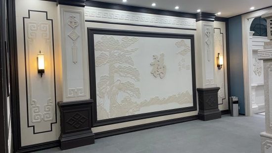 整体展示简约、大气,极具空间感与立体感,外墙空间以“中式艺术线条”、“罗马艺术线条”展示为主,通过全面展示场景氛围、材质张力、空间风格等,让瓷砖成为空间的主角。