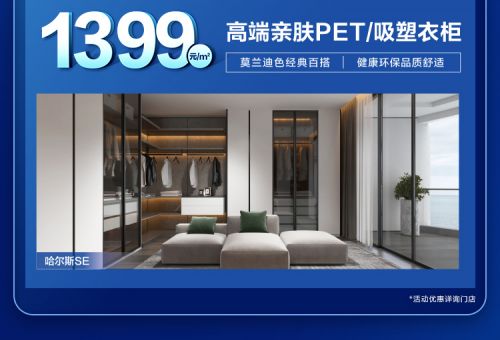 全屋产品A系莫赫SE系列,限时抢购盛惠价1399元/㎡,选用现代高光精细UV工艺,成就一体成型、无封边缝隙、具有耐酸碱抗腐蚀、防水防潮特点的高耐用、极具品质感的板材,从而让家有着高光泽度,饱满亮丽、高光通透,尽显轻奢美学家居气质。