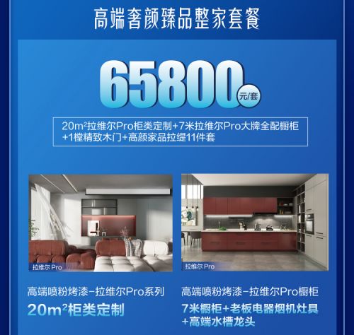 法国司米高端奢颜臻品整家套餐,65800元/套即享20㎡高端喷粉烤漆拉维尔Pro系列柜类定制+拉维尔Pro 7米橱柜+老板电器烟机灶具+高端水槽龙头,大牌全配齐!