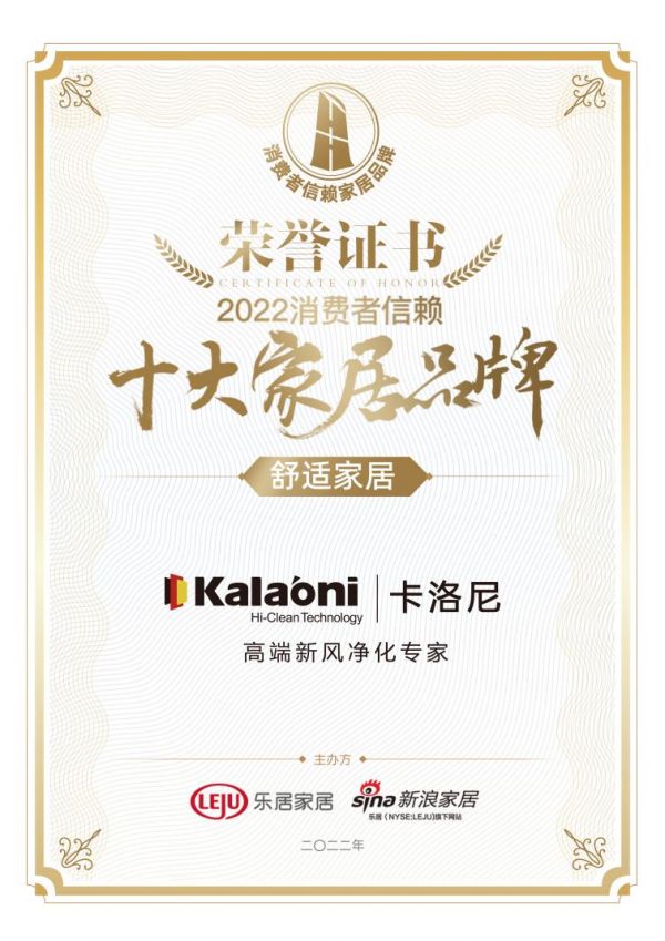 卡洛尼新风荣誉满满,曾在2019年获得中国质量检验协会“全国新风机行业质量领军企业”、2020年荣获“中国新风系统十大品牌”,在“2022中国家居消费者口碑调查”活动中荣获《2022 家居消费者口碑品牌》,随后2022年年底,经行业协会领导、设计师、资深学者、消费者等组成的专家评审会综合评定中一骑绝尘,被评选为《2022 消费者信赖十大家居品牌》。