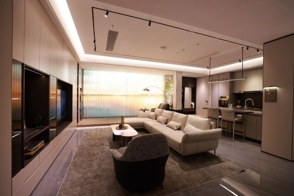 不同于“整家定制类产品”组合拼凑,林氏整家定制选择了“困难而正确”的道路——应用成熟的CMF体系自行研发,使不同品类在风格、色调、品质方面更加统一和谐。今年更延伸推出墙体、门、柜体类新品,实现门墙柜与成品软饰一体化整家搭配解决方案。因而,在林氏整家定制全新店态所见的现场空间效果均能直接落地,生动诠释了所见即所得。