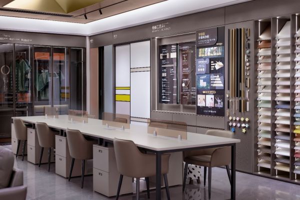 为了给用户带来身临其境的在场性观感体验,林氏整家定制全新店态动线规划上剔除多余过道,直接以情景空间穿插步入式动线,达到一步一场景,一步一空间的效果。不同情境的空间紧密相邻,给予用户更强烈的代入感,实现从“看产品”往“逛场景”转变,拉近场景与用户的物理与心理距离,让人流连其间。