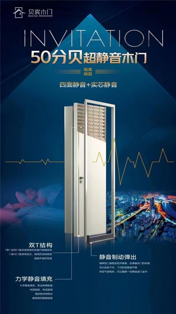 贝宸T型木门比传统木门多两面“隔音面”有效阻隔声音传播路径。静音门在安装的时候会使用软性硅胶条,静音门开关很安静,密封性也非常好,这样避免了碰撞发出声音,密封性好也可以隔绝噪音。