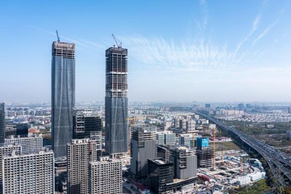 由Gensler设计,上海在建最高双子塔 张江“科学之门”完成结构封顶