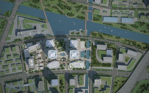 在总体布局上,Gensler将多重功能组团进行合理分布,在东西双塔周边散布多边形的裙楼,寓意川杨河畔的“科技岛”,与“科学之门”双塔彼此呼应。