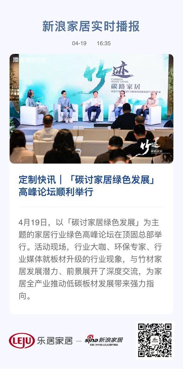 新浪定制家居讯 4月19日,以「碳讨家居绿色发展」为主题的家居行业绿色高峰论坛在顶固总部举行。活动现场,行业大咖、环保专家、行业媒体就板材升级的行业现象,与竹材家居发展潜力、前景展开了深度交流,为家居全产业推动低碳板材发展带来强力指向。