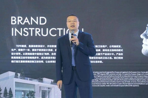 温总介绍缇派是源自欧洲设计,拥有自主独特的欧式设计哲学,将人性化与功能性都藏于产品设计中。他表示缇派一直朝着高端品质定制卫浴的方向发展。在技术实力上,缇派也是位于行业前列。温总通过PPT展示了科技创新的创造工厂和近年来缇派在各方面获得的奖项和专利。正是这样的实力,吸引了许多国内外的合作。