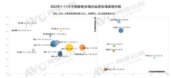 多方推动下,“懒人经济”这一新名词带来了新的发展风口,从数据中我们也可窥见一些端倪。奥维云网(AVC)推总数据显示,2022年1-11月累计,家电市场零售额6543亿元,分品类来看,传统大家电需求释放缓慢,而代表健康需求、集成需求、精致懒人类需求产品则处于上升通道中。