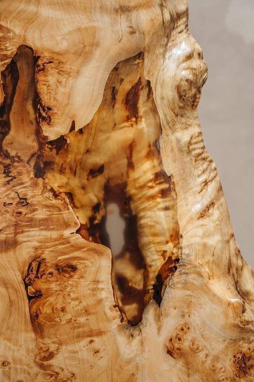 本次展出系列中树龄最久远的一枚,树龄近350年,经百载春秋,见证人间风雨。透过木料被浸润显现的肌理,便仿佛看到过去的那许多年月。而那些积累下来的时间福祉,则以另一种形式再生,重塑,等待你前去探寻。